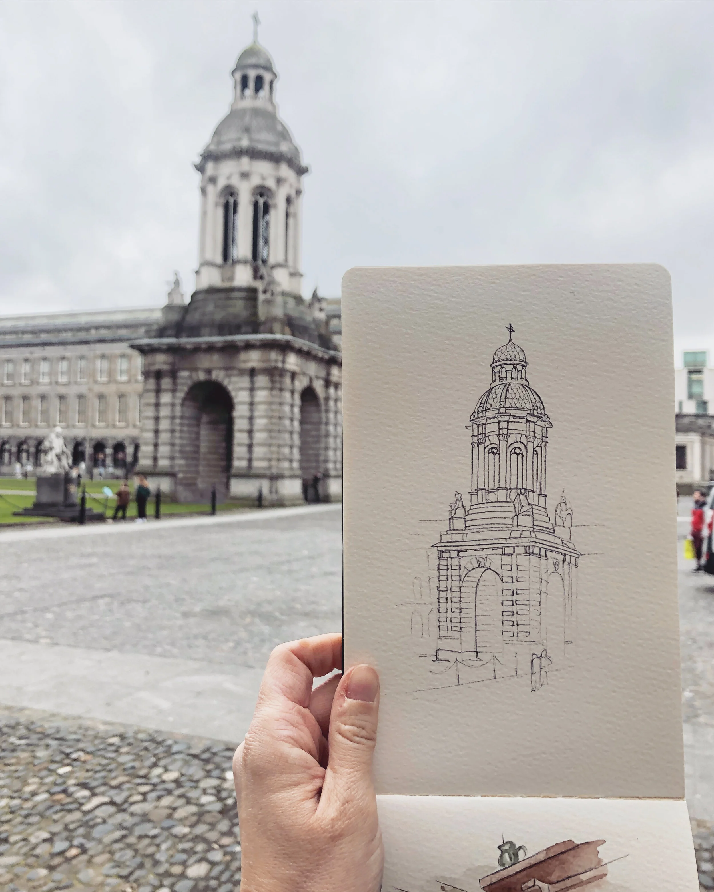 The following images are from my travel sketchbook, which I started while backpacking from Greece to Ireland over two months in the fall of 2015. Each painting is done on location, and can take anywhere from 30 to 60 minutes to complete. Painted in a 5" × 8¼" Moleskine Watercolor Notebook using a 12-color Sakura Koi pocket-sized watercolor kit.
